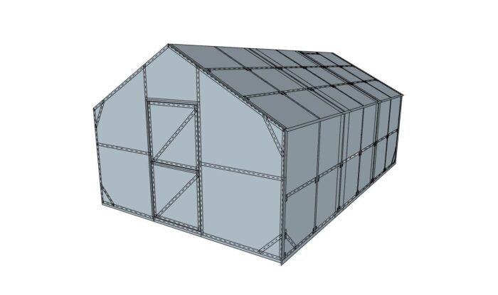 Šiltnamio rėmas gaminamas iš cinkuoto 40×40 mm profilio. Danga tvirtinama savisriegiais varžtais. Konstrukcija surenkama iš atskirų elementų. Tvirtinimo į žemę šis šiltnamis neturi. Konstrukcija surenkama naudojant savisriegius varžtus, tai reiškia, kad šiltnamį surinkti bus paprasčiau ir greičiau nei šiltnamius, kuriuose naudojami paprasti varžtai su veržlėmis.