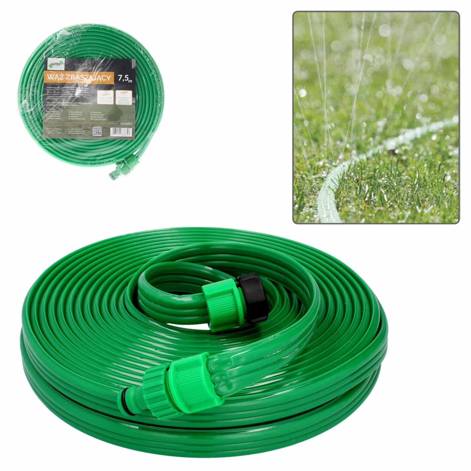 Lėtas ir tikslus laistymas? Tai įmanoma su 7,5 m laistymo žarna-purkštuvu! Prijunkite prie vandens šaltinio ir ji pasirūpins gėlynų, kraštinių ir siaurų erdvių laistymu sode. 💦🌿