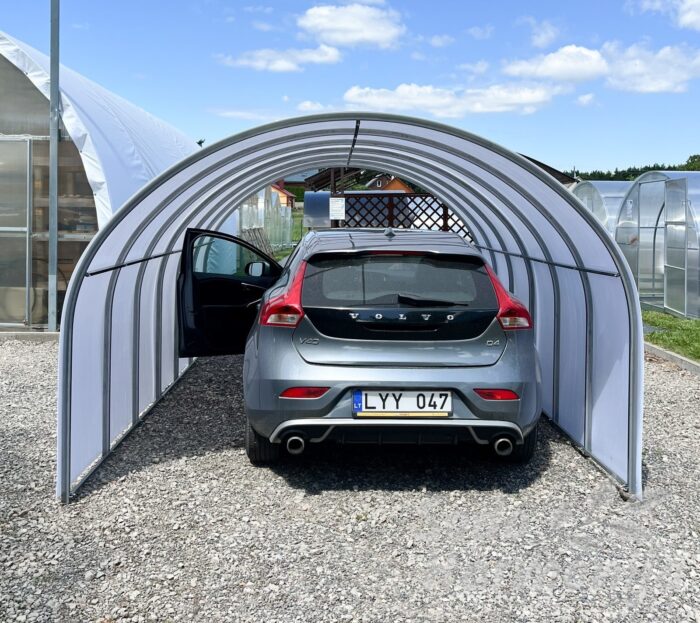 - Pastogė nedideliems automobiliams (talpina nedidelius automobilius vieną automobilio kraštą glaudžiant prie šoninės sienos, išlipus iš automobilio atstumas nuo žemės iki stogo yra ~170 cm, todėl ieškantiems erdvios pastogės automobiliui siūlome peržiūrėti kitus mūsų produktus – auto pastogės)
