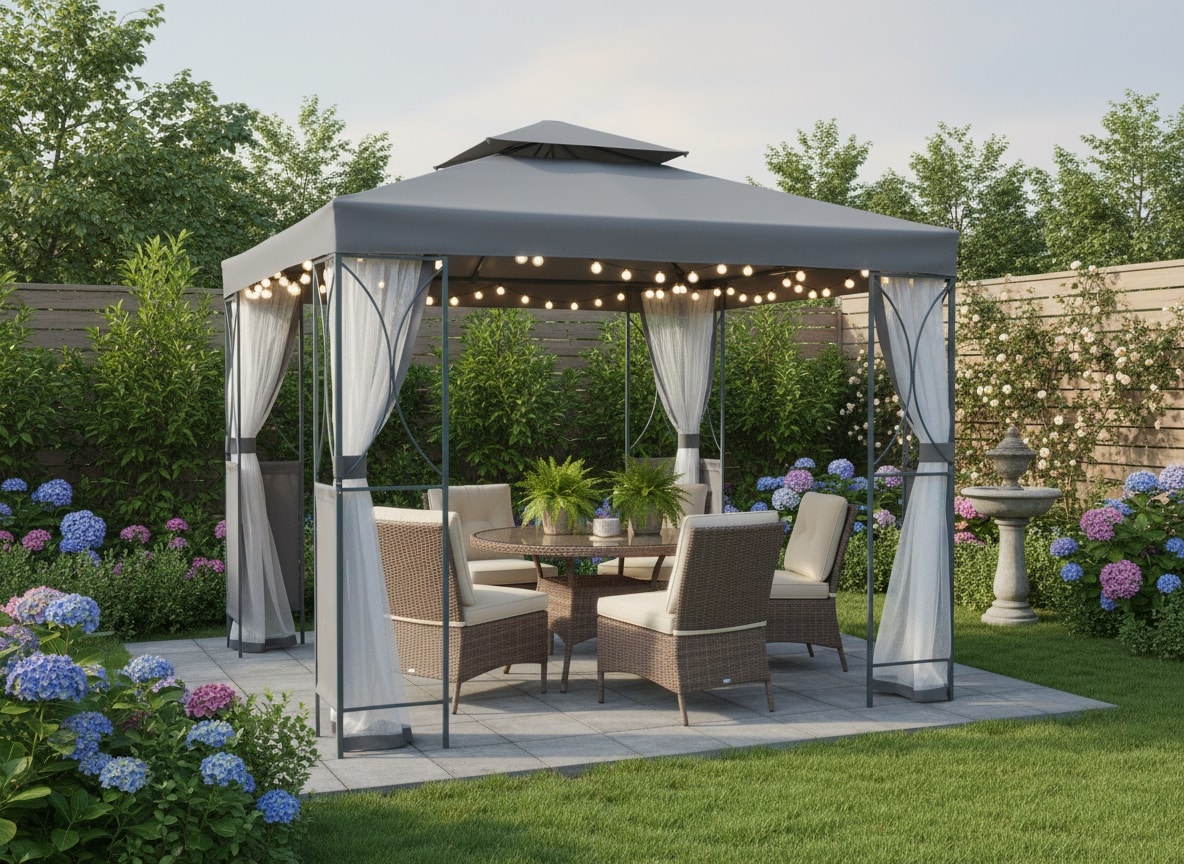 Elegantiška ir funkcionali sodo pavėsinė su moskitiera – puikus sprendimas poilsiui kieme ar terasoje. Šis modelis suteikia apsaugą nuo saulės, vėjo ir uodų, o tvirta konstrukcija užtikrina stabilumą.