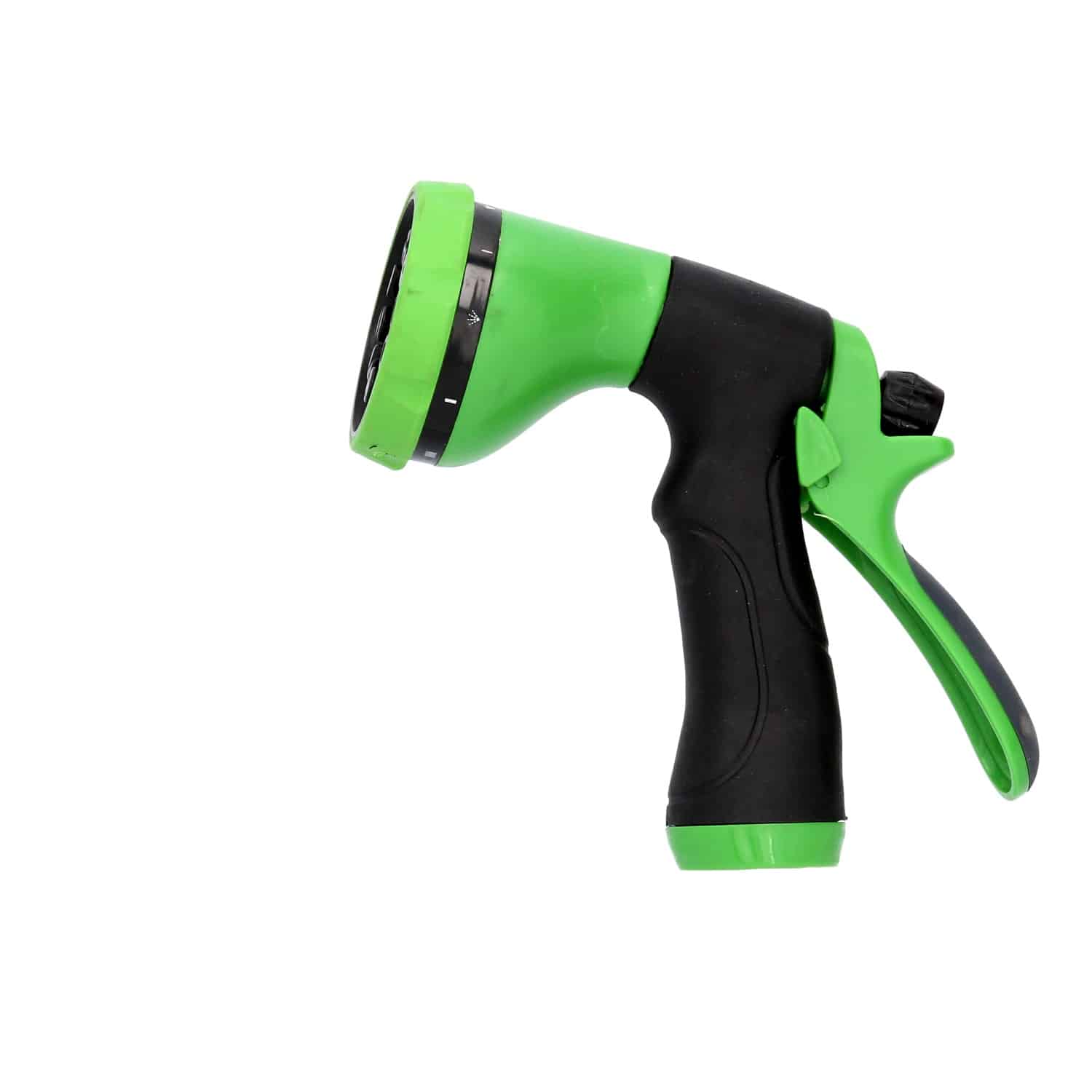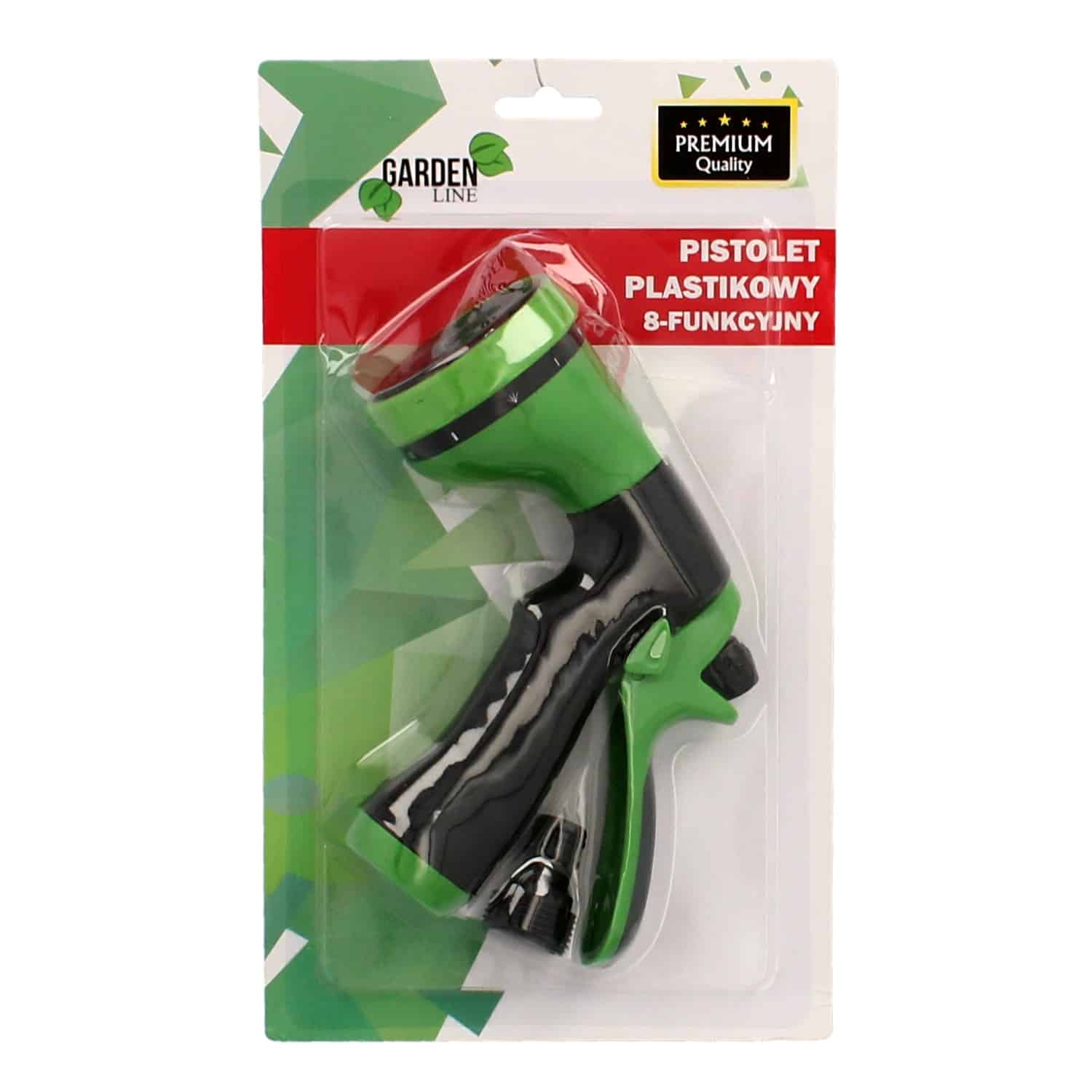Plastikinis purkštuvas, 8 laistymo funkcijų. Leidžia laistyti įvairiomis vandens srovėmis – nuo koncentruoto iki išsklaidyto rūko. Vandens srovės keitimas labai paprastas ir patogus.