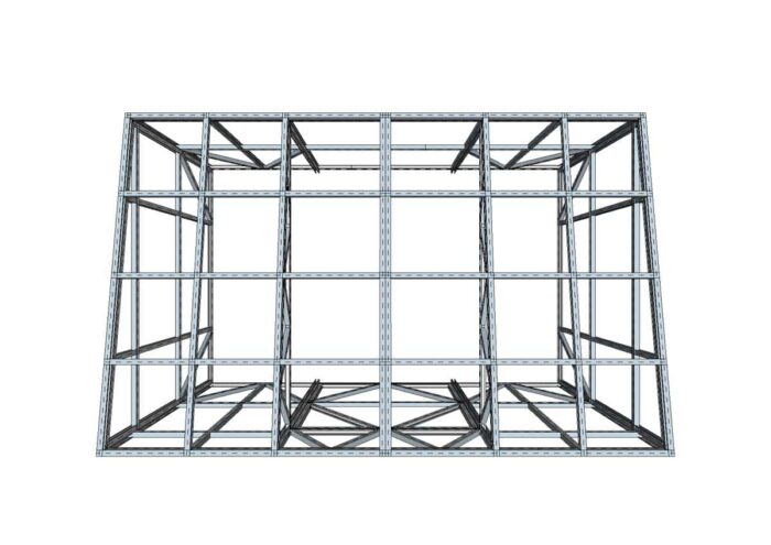 - Plieninė konstrukcija – Rėmo konstrukcija pagaminta iš specialaus cinkuoto plieno kuris užtikrins sandėliuko stiprią konstrukciją ir ilgaamžiškumą.