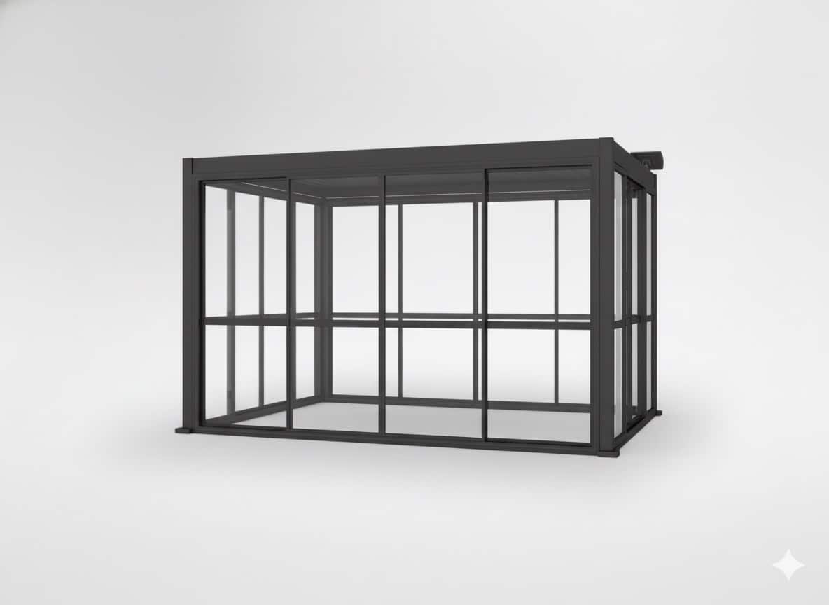 Šios durys skirtos greitai uždengti aliumininę pergolą, apsaugant terasą nuo lietaus, vėjo ir šalčio. Lengva montuoti, praleidžia šviesą – puikiai tinka sodui ištisus metus.