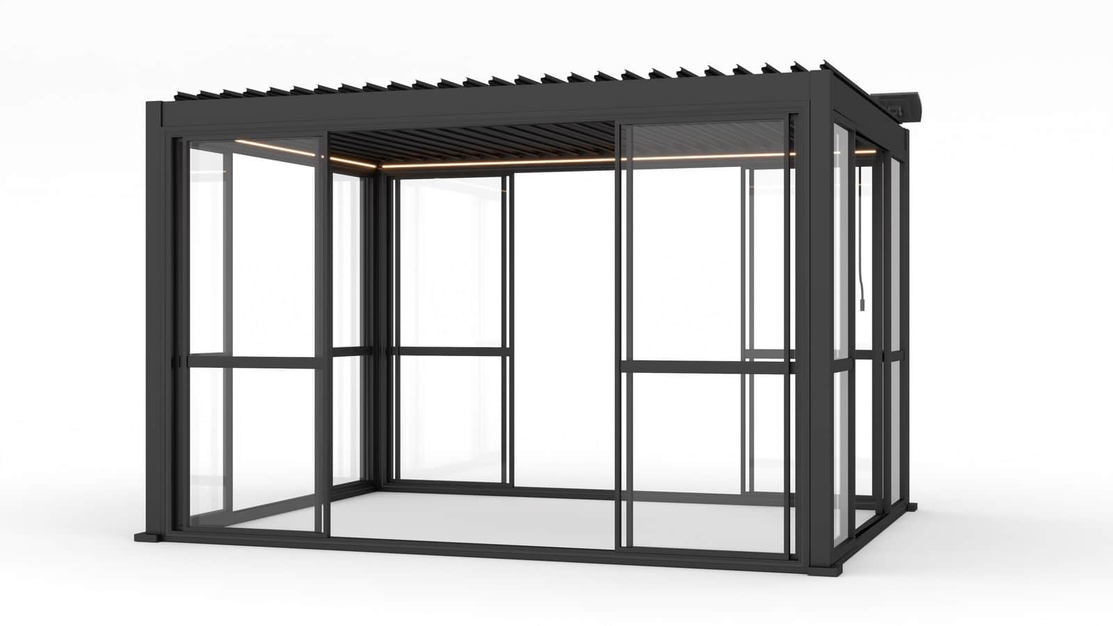 Tai praktiškas ir apgalvotas sprendimas tiems, kurie nori maksimaliai išnaudoti pergolą bet kokiu oru. Slankiojančios durys efektyviai padidina uždengtos erdvės funkcionalumą, užtikrindamos apsaugą nuo vėjo ir lietaus, tuo pačiu pagerindamos kasdienio poilsio komfortą. Jų modernus dizainas suteikia pergolai elegantišką ir vientisą vaizdą, pakeldamas visos kompozicijos estetiką 🌿✨