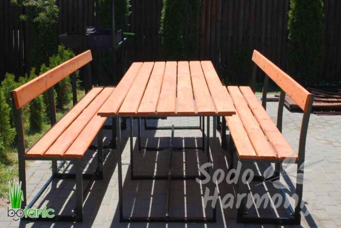 Šis stalas skirtas naudoti jūsų pavėsinėje, terasoje, sodyboje ar tiesiog kieme. Patikima metalinė konstrukcija, rėmas nudažytas minlteliniu būdu, ruda spalva, mediena nelakuota, todėl galėsite pasirinkti sau tinkančią spalvą ir jį priderinti prie esamos aplinkos.